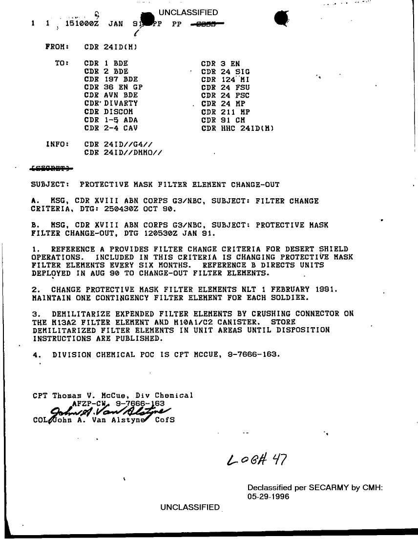 Document 1 f:/Week-20/BX001414/DUTY LOG 15 JAN 91 G3/protective mask filter element change out:060796:06079615562514