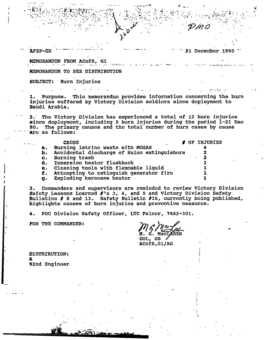 Document 1 f:/Week-20/BX001420/DUTY OFFICERS LOG PMO 24TH INF DIV DEC 90/burn injuries 21 dec 90:06079615285247:06079615562517