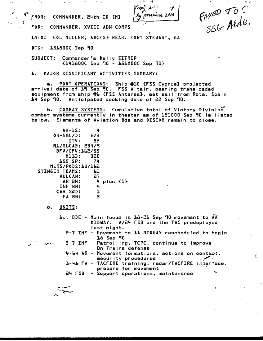 Document 4 f:/Week-19/BX001406/ALPHA REPORT SEP 90/cdrs daily sitrep 14 15 sep 90:06079615285253:06079615562523