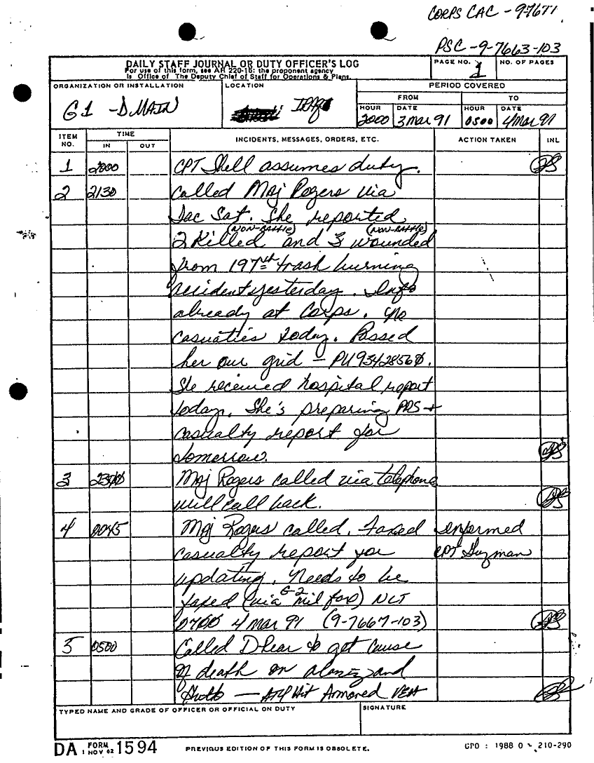 Document 135 f:/Week-22/BX001433/MESSAGE-TELEPHONE TRAFFIC/daily staff journal or duty officers log:06219615521613