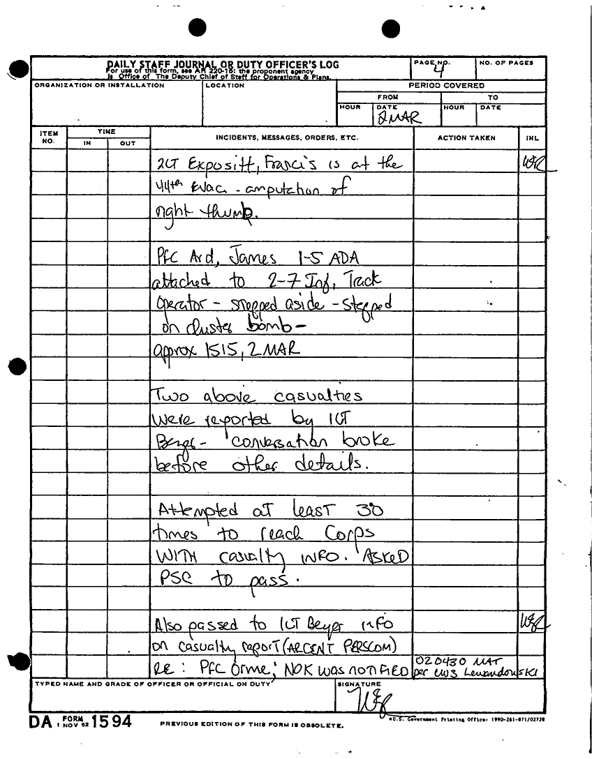 Document 135 f:/Week-22/BX001433/MESSAGE-TELEPHONE TRAFFIC/daily staff journal or duty officers log:06219615521613