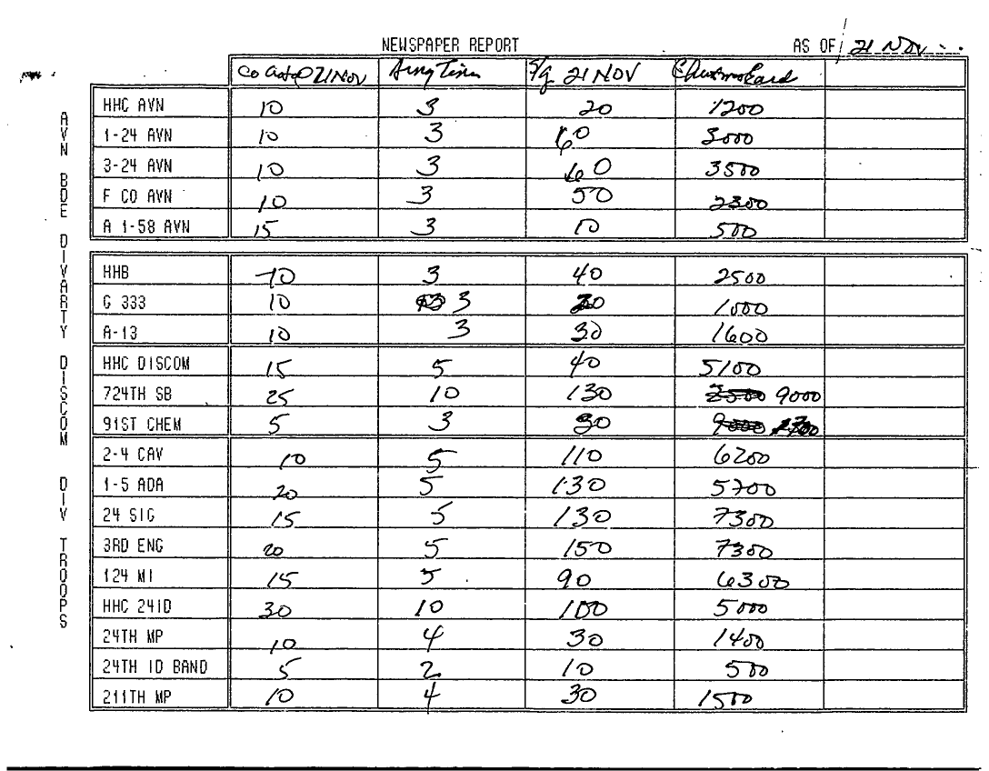 Document 9 f:/Week-22/BX001433/BRIEFING NOTES/personnel daily summary 20 nov 90:06219615523647