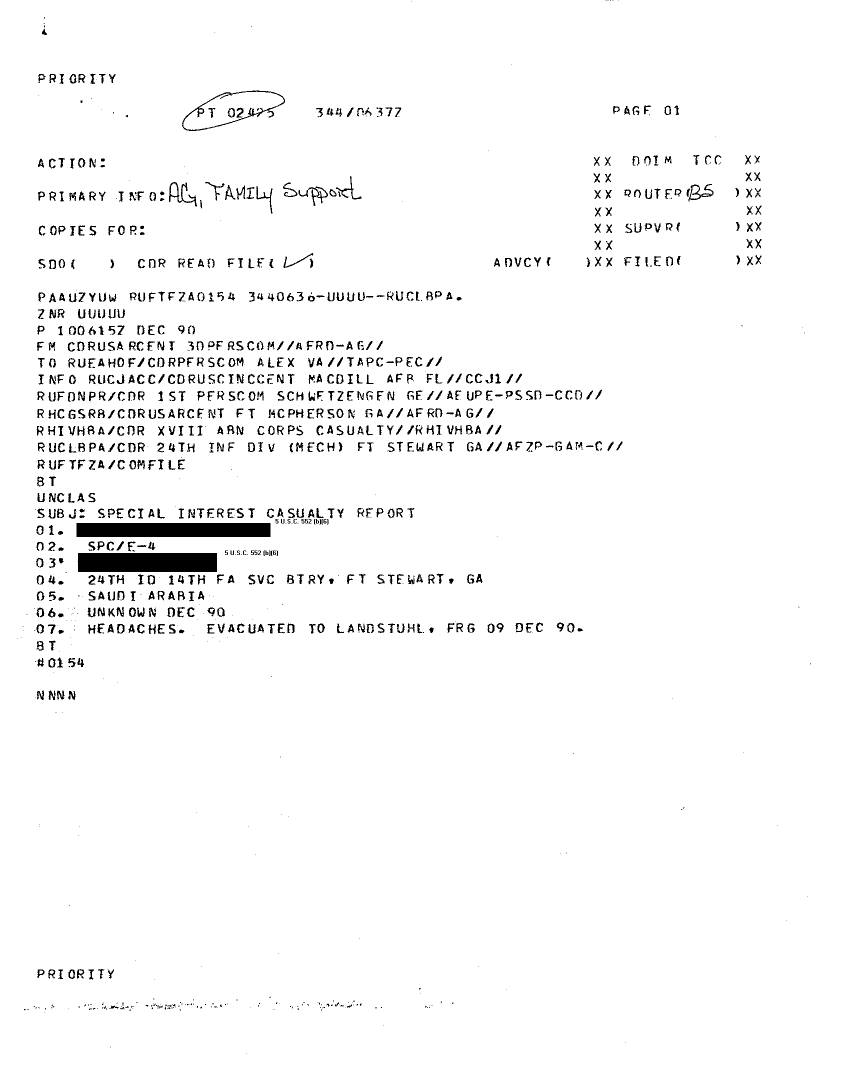 Document 1 f:/Week-22/BX001428/INCOMING MESSAGES DESERT SHIELD MEDDAC DEC/message special interest casualty report:06219615523748