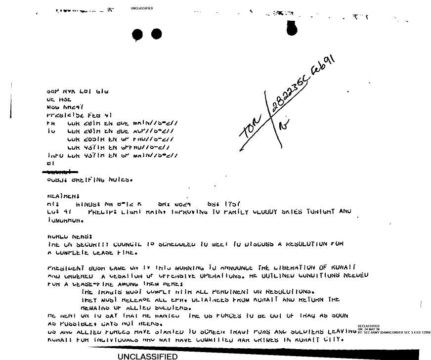 Document 3 f:/Week-18/BX000057/DUTY LOG MAIN CP MESSAGES 20 ENGINEER BDE 28 FEB 91/briefing notes:07019618404644