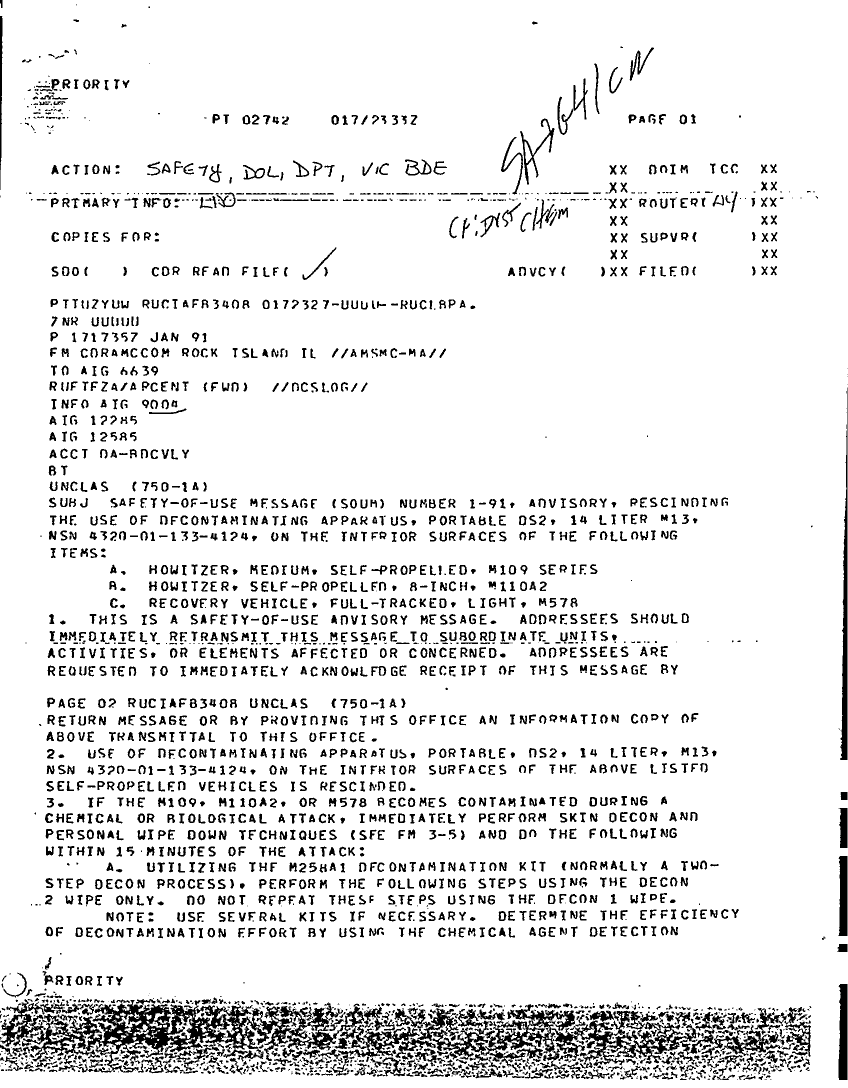 Subject = SAFETY OF USE MESSAGE NUMBER 1 91