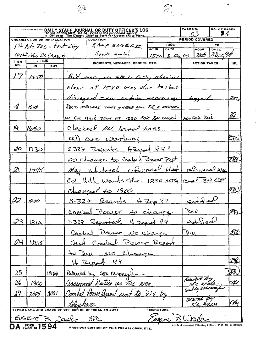 Document 4 f:/Week-22/BX001605/101ST ABN DIV AASLT DUTY LOG DEC 90/daily staff journal or duty officers log 3 dec 9:07019618410780