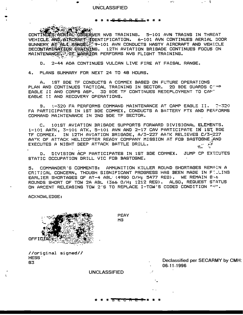 Document 4 f:/Week-18/BX000038/DUTY LOG 101 ABN SITREPS G3 DEC 90/commanders narrative summary 28 dec 90:0705961342129