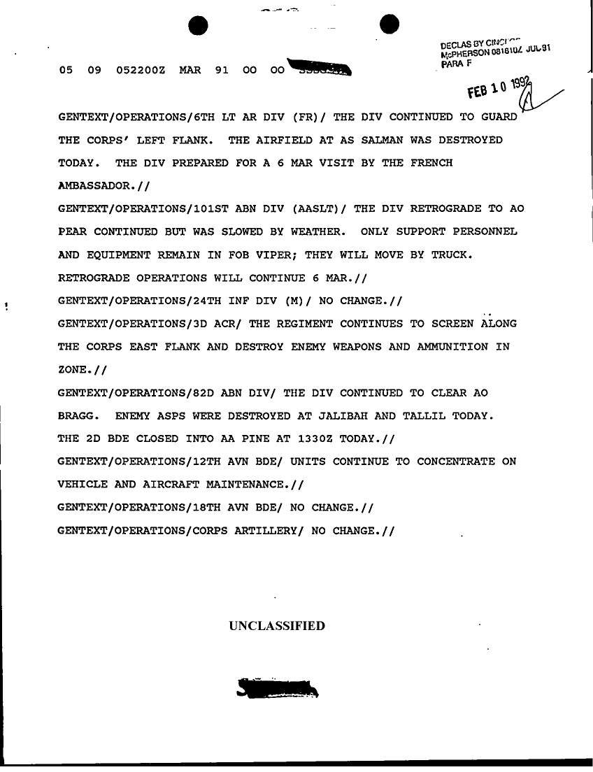 Document 7 f:/Week-14/BX000042/SITUATION REPORTS FEB-MAR 91/sitrep xviii abn corps 005 mar 91:07059613424446