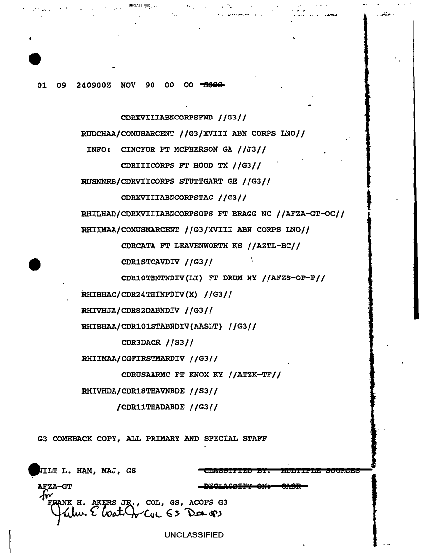 Folder Title = DUTY LOG 18 ABC FWD SITREPS G3 NOV 90