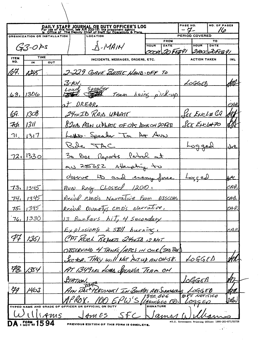 Document 59 f:/Week-22/BX001602/DUTY LOGS G3 MAIN 19-22 FEB 91/daily staff journal 20 feb 91:07059613421614