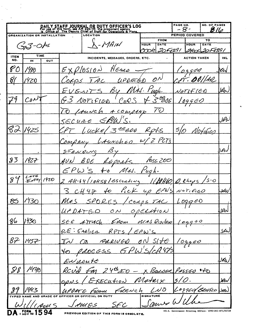 Document 59 f:/Week-22/BX001602/DUTY LOGS G3 MAIN 19-22 FEB 91/daily staff journal 20 feb 91:07059613421614