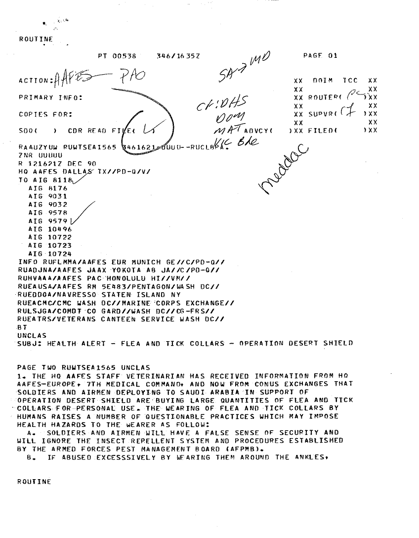 Document 2 f:/Week-22/BX001428/INCOMING MESSAGES DESERT SHIELD MEDDAC DEC/message health alert flea and tick collars oper:07059613422828