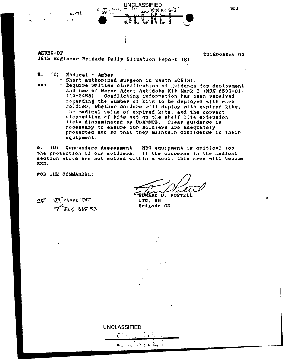 Document 3 f:/Week-25/BX000209/DUTY LOG 7TH ENG BDE 21-24 NOV 90/18th engineer brigade daily sitrep:07129615522713