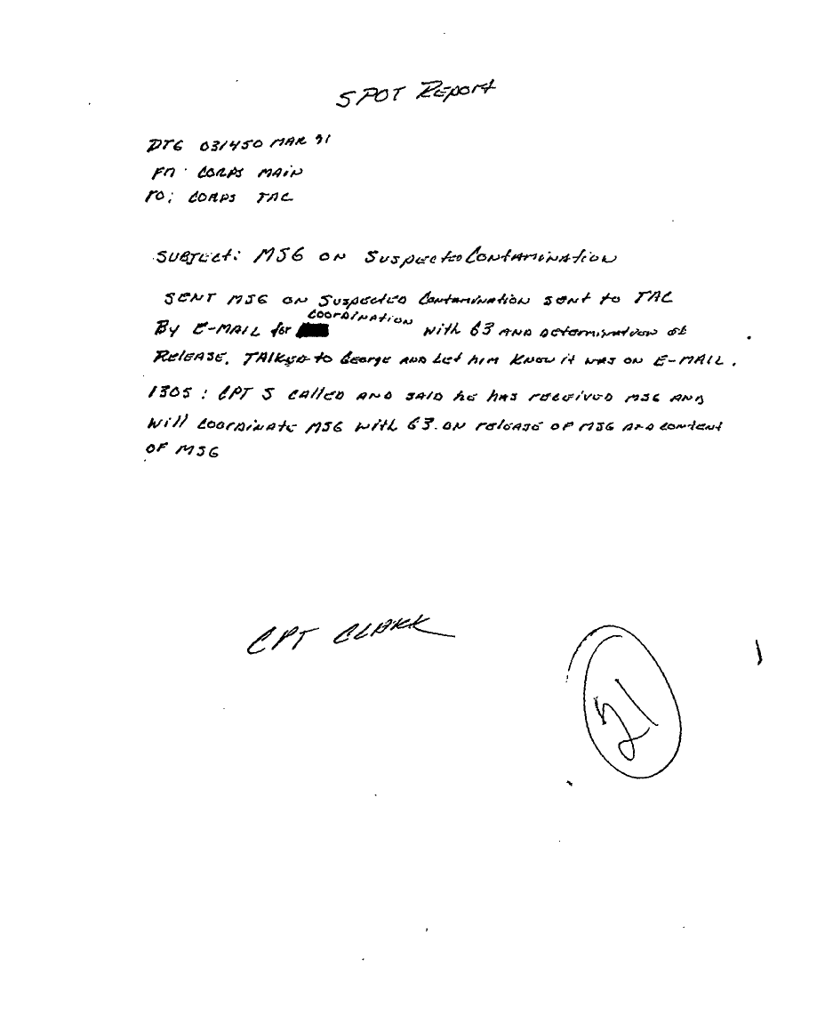 Document 1 f:/Week-25/BX000231/0007 CORPS CHEMICAL BOOK THREE/msg on suspected contamination:07129615523324