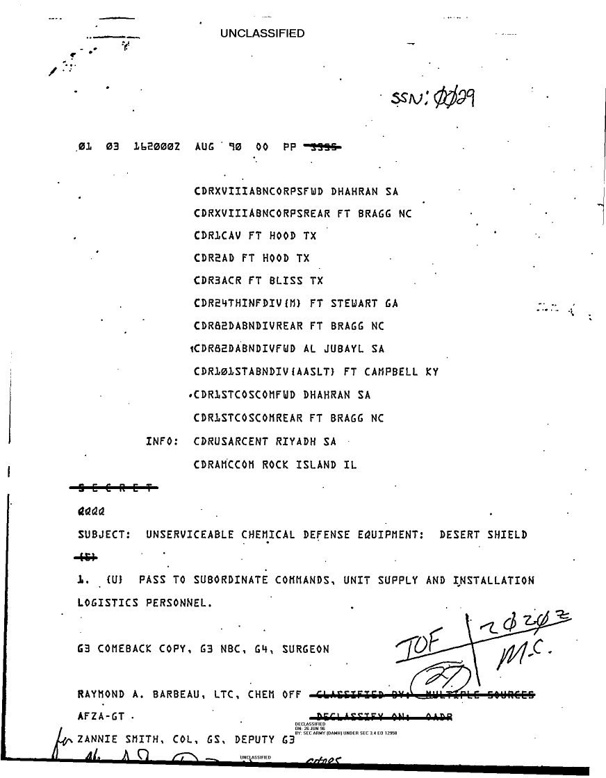 Document 3 f:/Week-22/BX001504/DUTY LOG 16-19 AUG 90/unserviceable chemical defense equipment:07129615525965