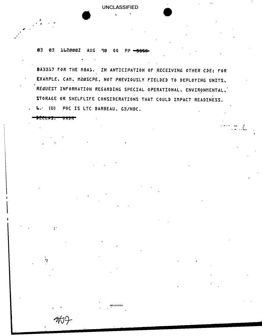 Document 3 f:/Week-22/BX001504/DUTY LOG 16-19 AUG 90/unserviceable chemical defense equipment:07129615525965