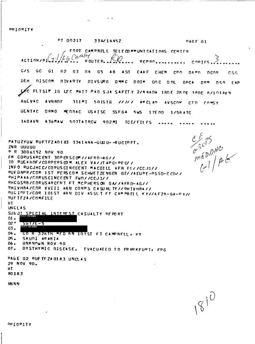Document 1 f:/Week-22/BX001608/DS-S MEDDAC DOCUMENTS/special interest casualty report 30 nov 90:07129615530066