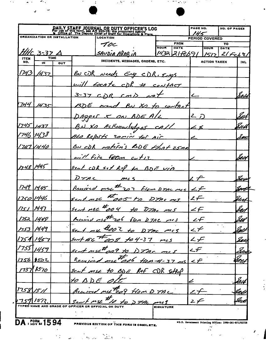 Document 58 f:/Week-27/BX001030/FEBRUARY 1991 DAY 16-23/daily staff journal:0719961126387