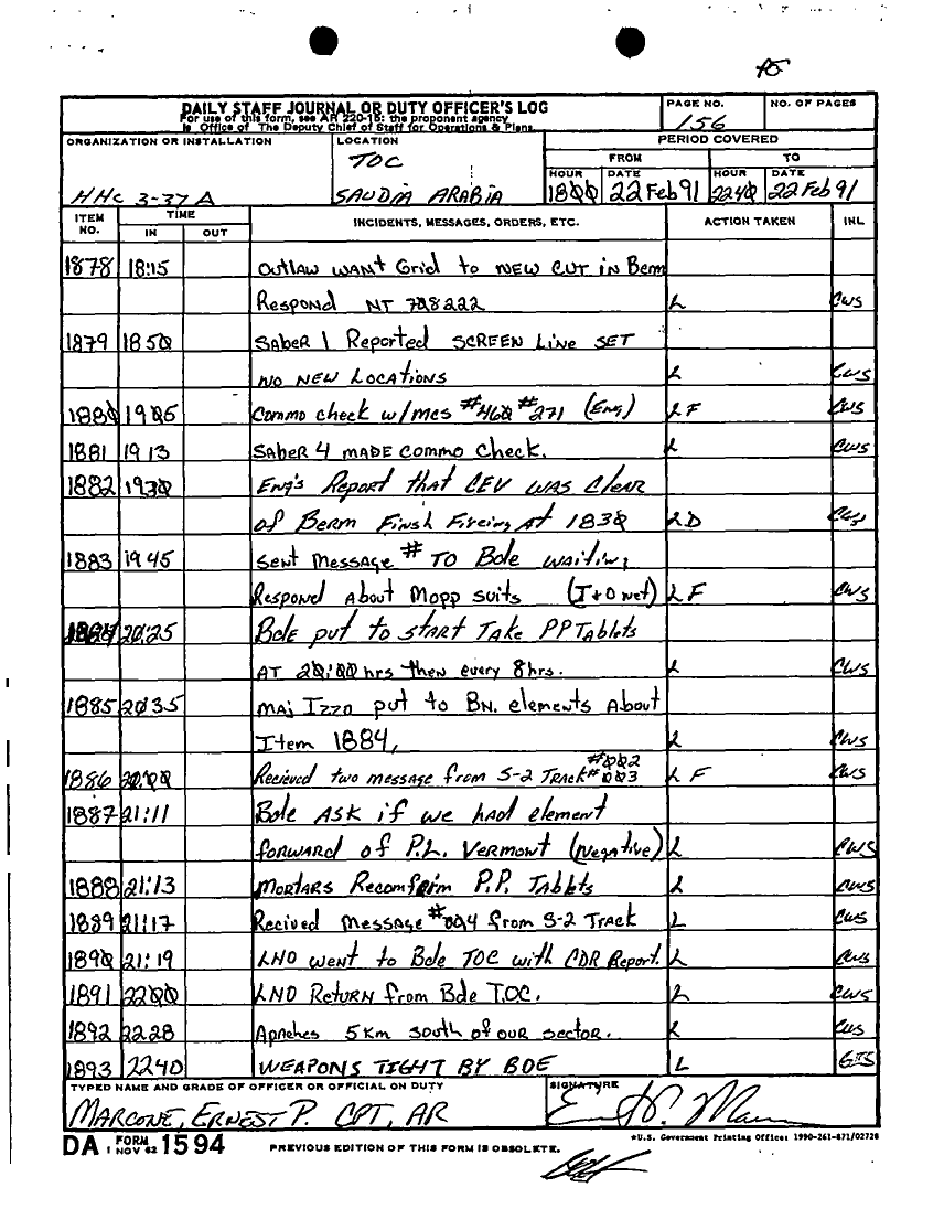 Document 58 f:/Week-27/BX001030/FEBRUARY 1991 DAY 16-23/daily staff journal:0719961126387