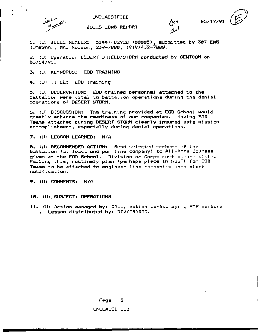 Folder Title = JULLS LONG REPORT 17 MAY 91 - 1