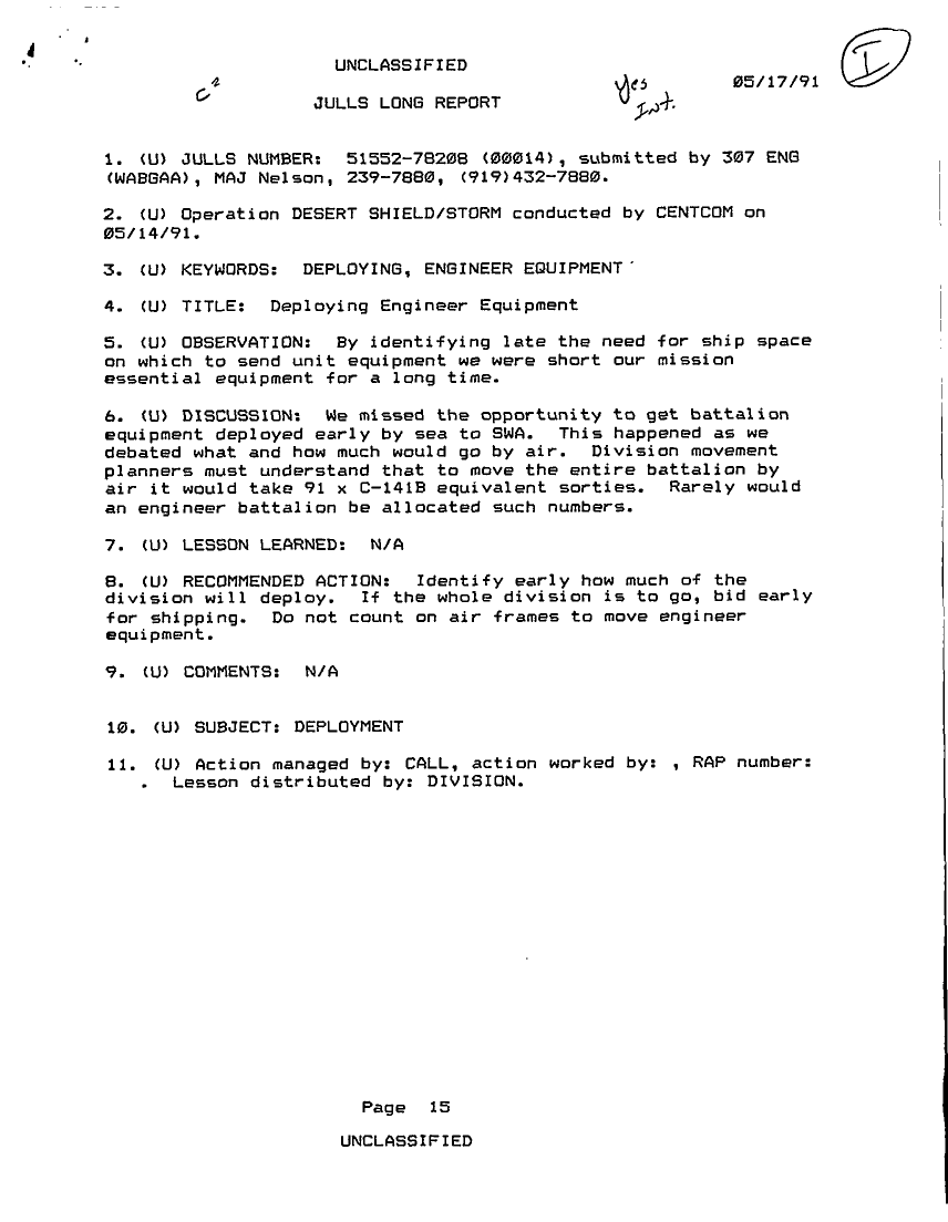 Folder Title = JULLS LONG REPORT 17 MAY 91 - 1