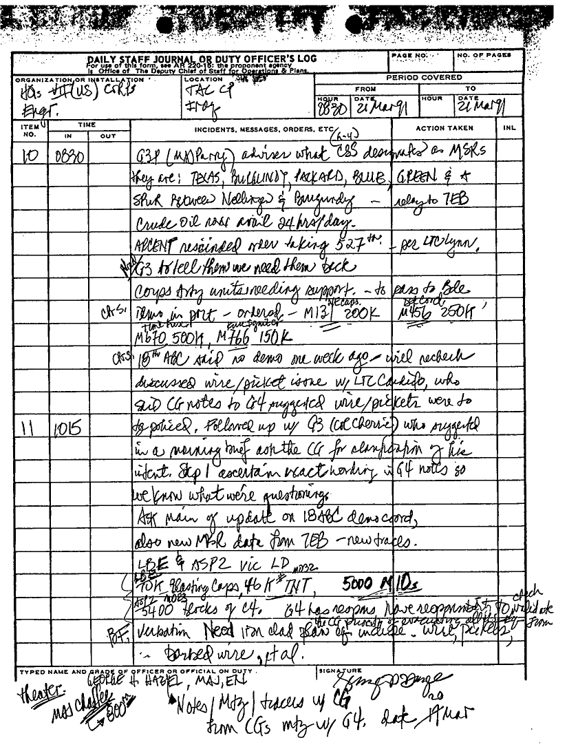 Document 59 f:/Week-25/BX000252/DAILY STAFF JOURNAL 16 MAR TO 13 APRIL 1991 SITREPS/daily staff journal:07199610194645