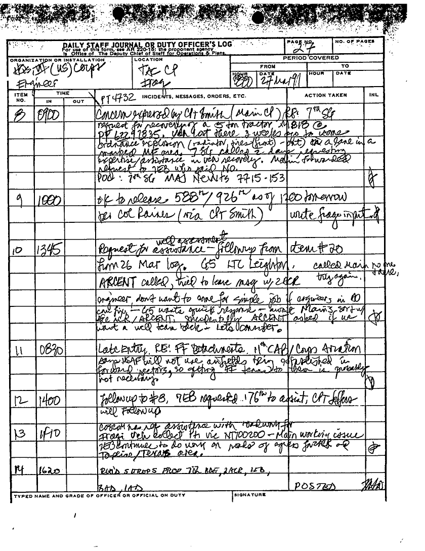 Document 59 f:/Week-25/BX000252/DAILY STAFF JOURNAL 16 MAR TO 13 APRIL 1991 SITREPS/daily staff journal:07199610194645