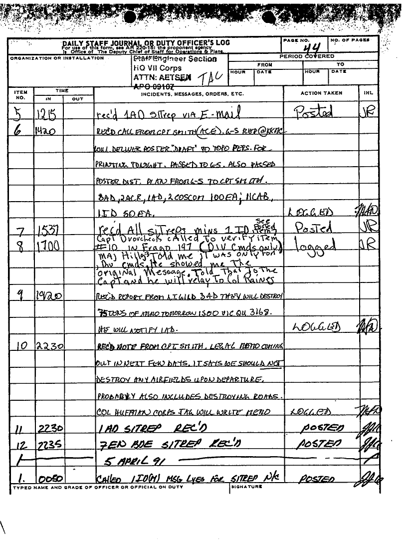 Document 59 f:/Week-25/BX000252/DAILY STAFF JOURNAL 16 MAR TO 13 APRIL 1991 SITREPS/daily staff journal:07199610194645