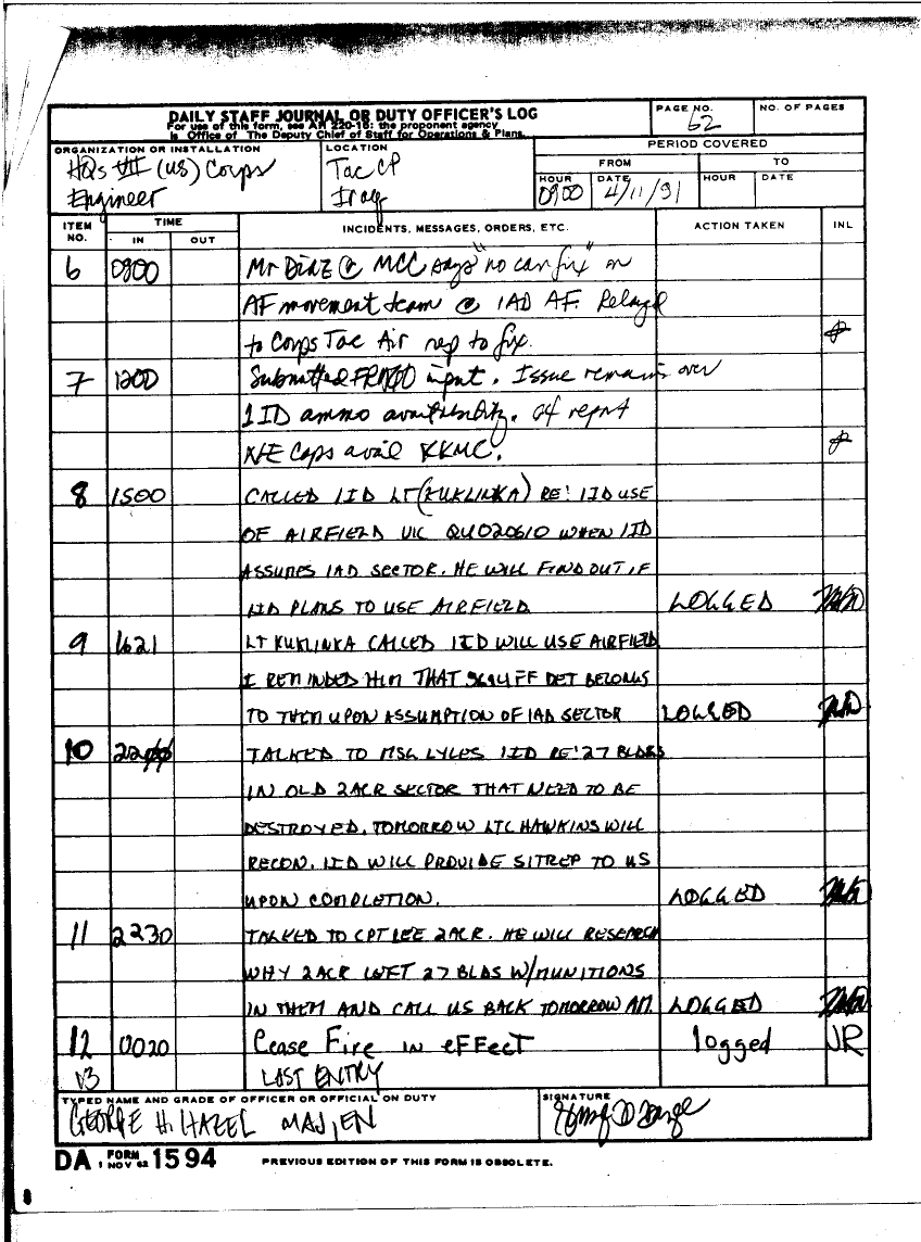 Document 59 f:/Week-25/BX000252/DAILY STAFF JOURNAL 16 MAR TO 13 APRIL 1991 SITREPS/daily staff journal:07199610194645