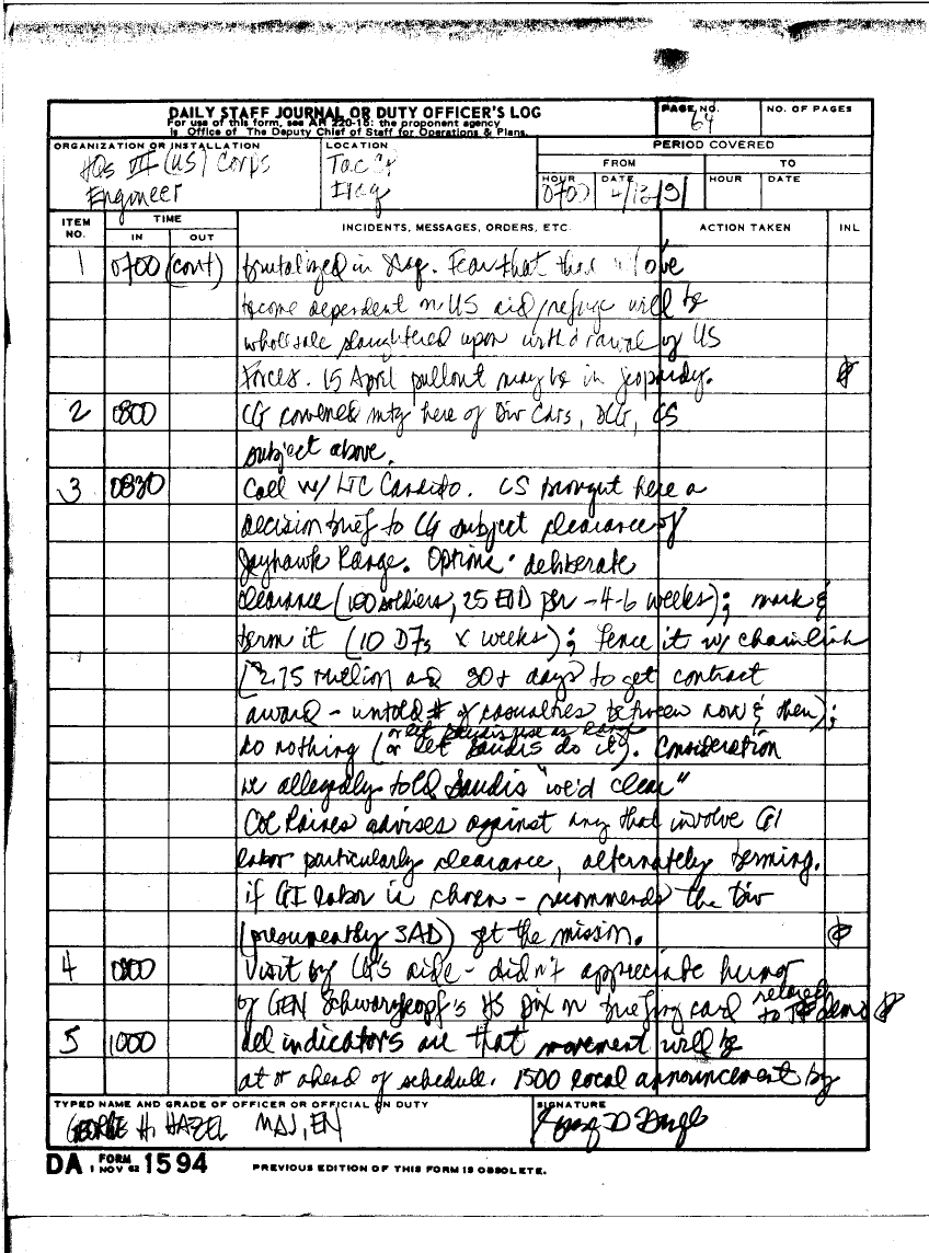 Document 59 f:/Week-25/BX000252/DAILY STAFF JOURNAL 16 MAR TO 13 APRIL 1991 SITREPS/daily staff journal:07199610194645
