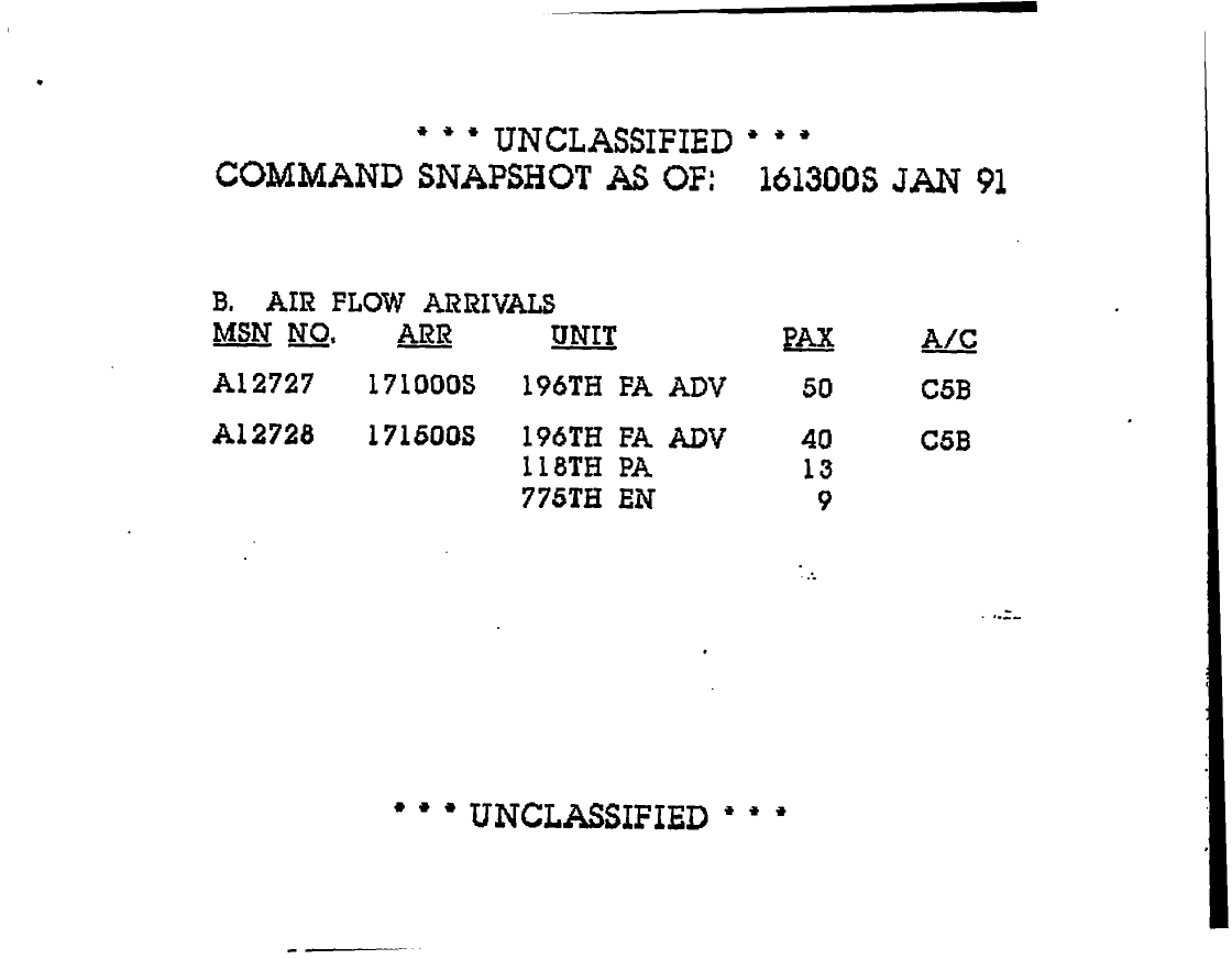 Document 20 f:/Week-22/BX001604/MESSAGES AND STATUS REPORTS/command snapshot 161300sjan91 xviii abn corps s:07199610201164