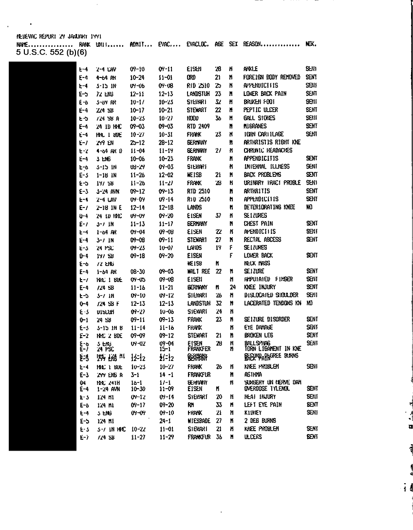 Document 6 f:/Week-22/BX001433/MEDICAL READINESS/medevac personnel report:07199610202882