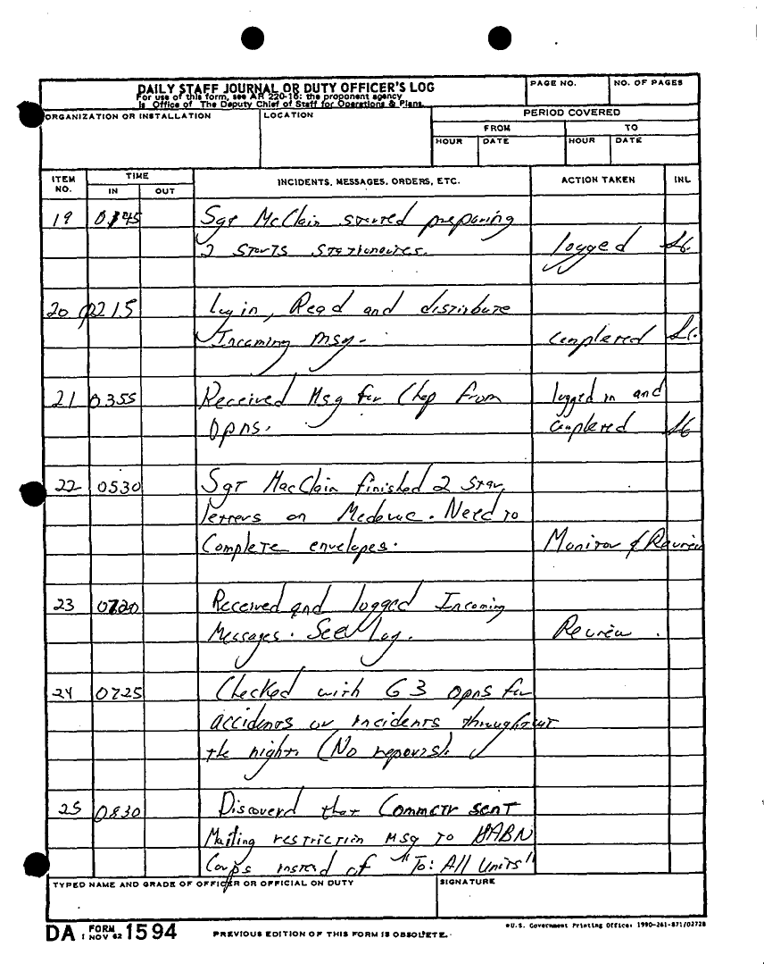 Document 180 f:/Week-22/BX001433/MESSAGE TRAFFIC LOGS-COMPLETED ACTIONS/daily staff journal duty log:07199610203890
