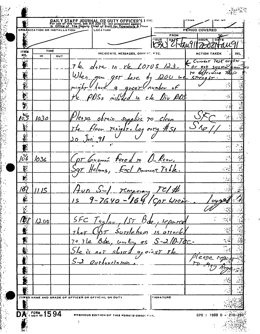 Document 180 f:/Week-22/BX001433/MESSAGE TRAFFIC LOGS-COMPLETED ACTIONS/daily staff journal duty log:07199610203890