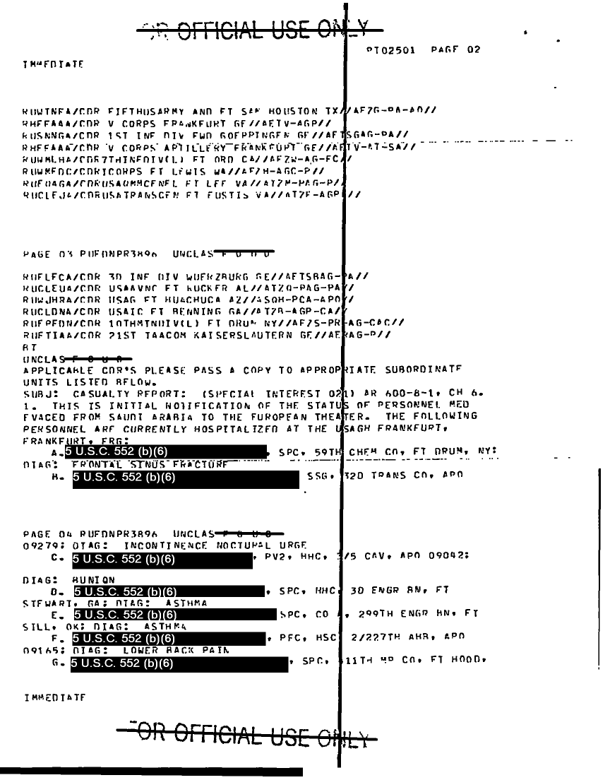 Document 3 f:/Week-20/BX001419/INCOMING DESERT SHIELD MESSAGES MEDDAC JAN 1/message casualty report 16 jan 91:07199610204292