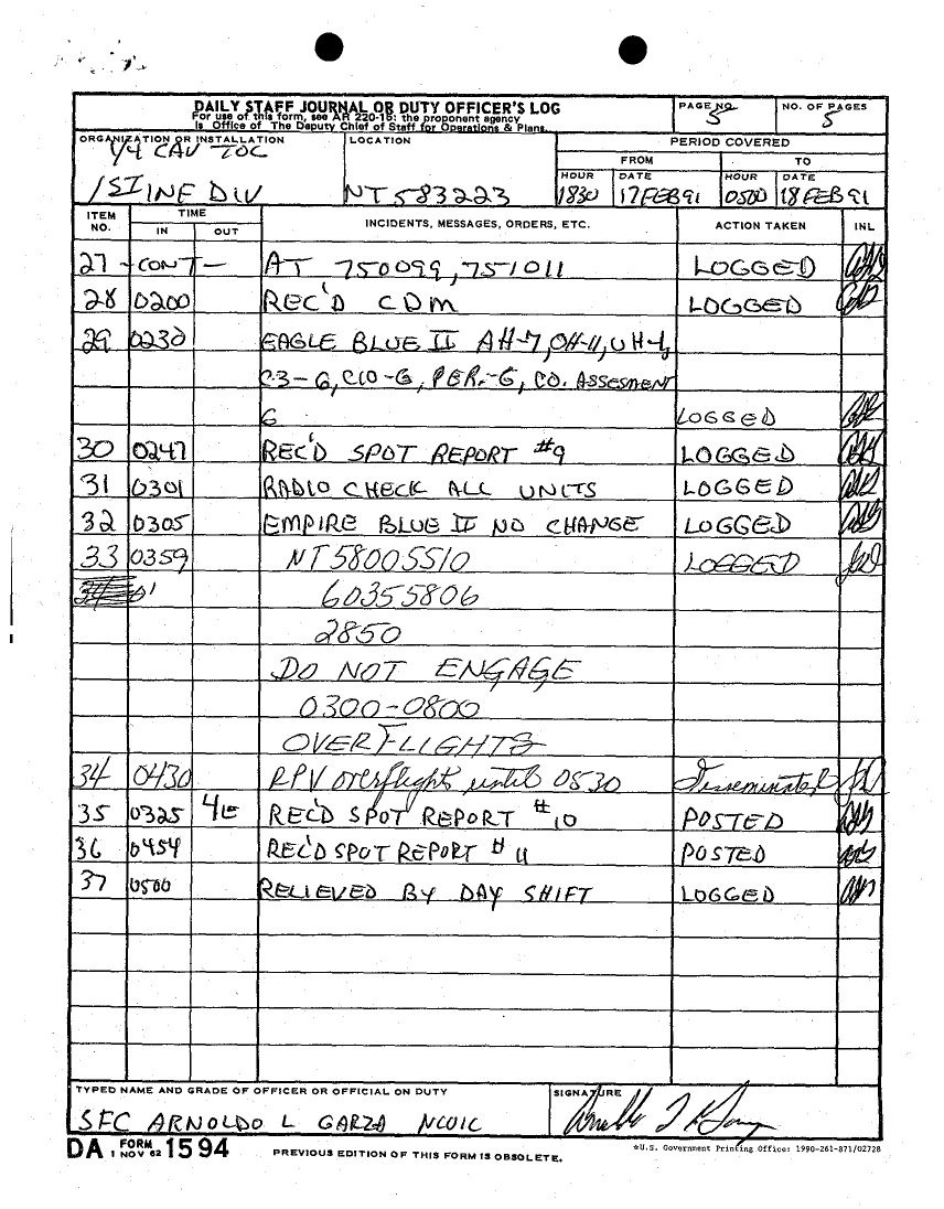 Folder Title = DAILY JOURNAL-STAFF JOURNAL AND TACTICAL OPERATIONS CENTER -TOC- LOGS DESERT STORM 17 FEB 91