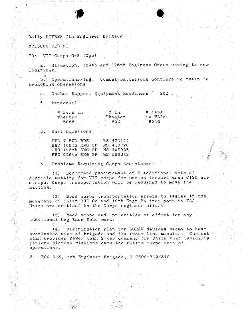 Document 35 f:/Week-24/BX000213/SITUATION REPORTS 7TH ENG BDE 22 DEC 90- 10 APR 91/daily commander sitrep:07269614225918