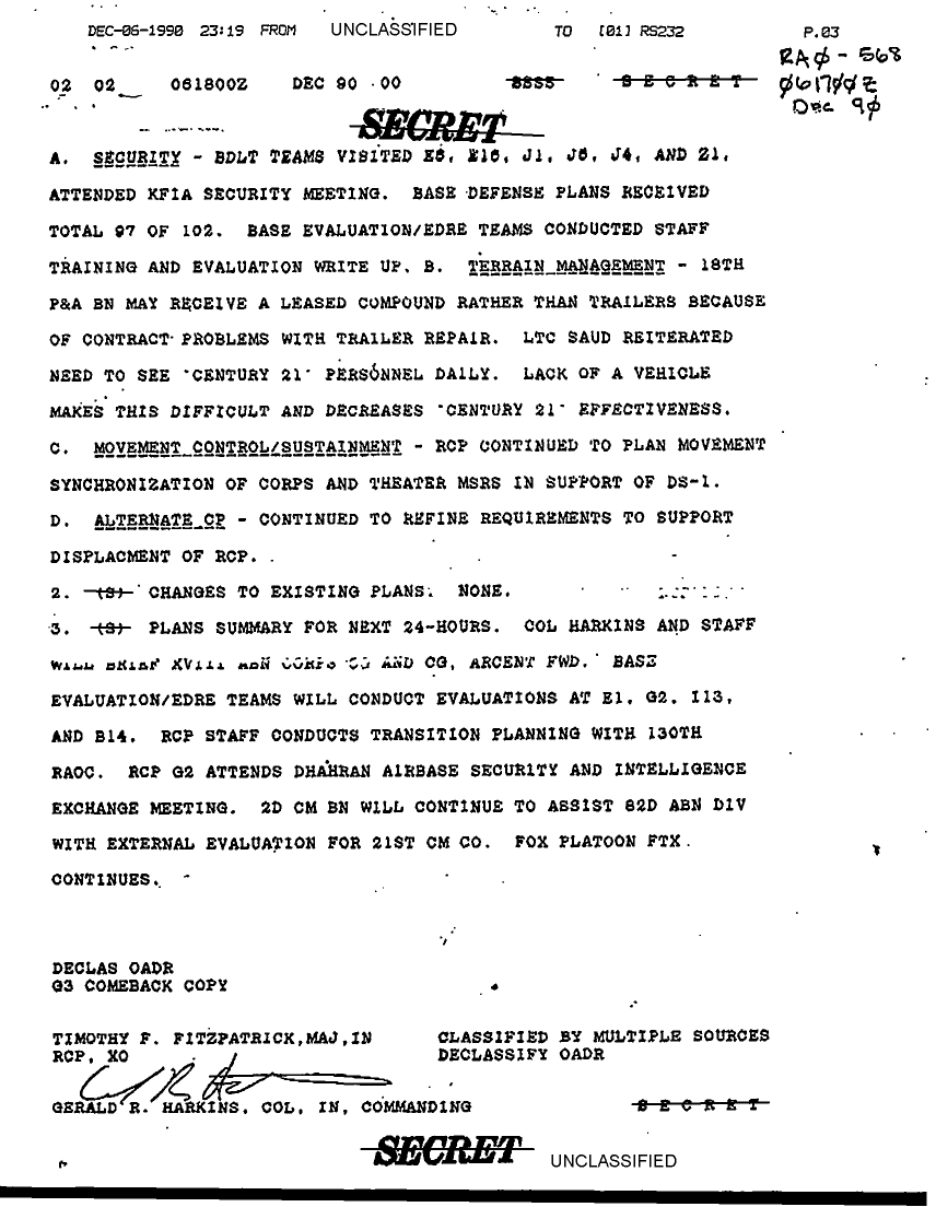 Folder Title = SITUATION REPORTS REAR CP DEC 90