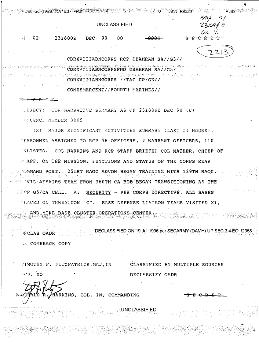 Document 61 f:/Week-17/BX000021/SITUATION REPORTS REAR CP DEC 90/cdr narrative summary dec 90 sequence no 0063:0802961505391