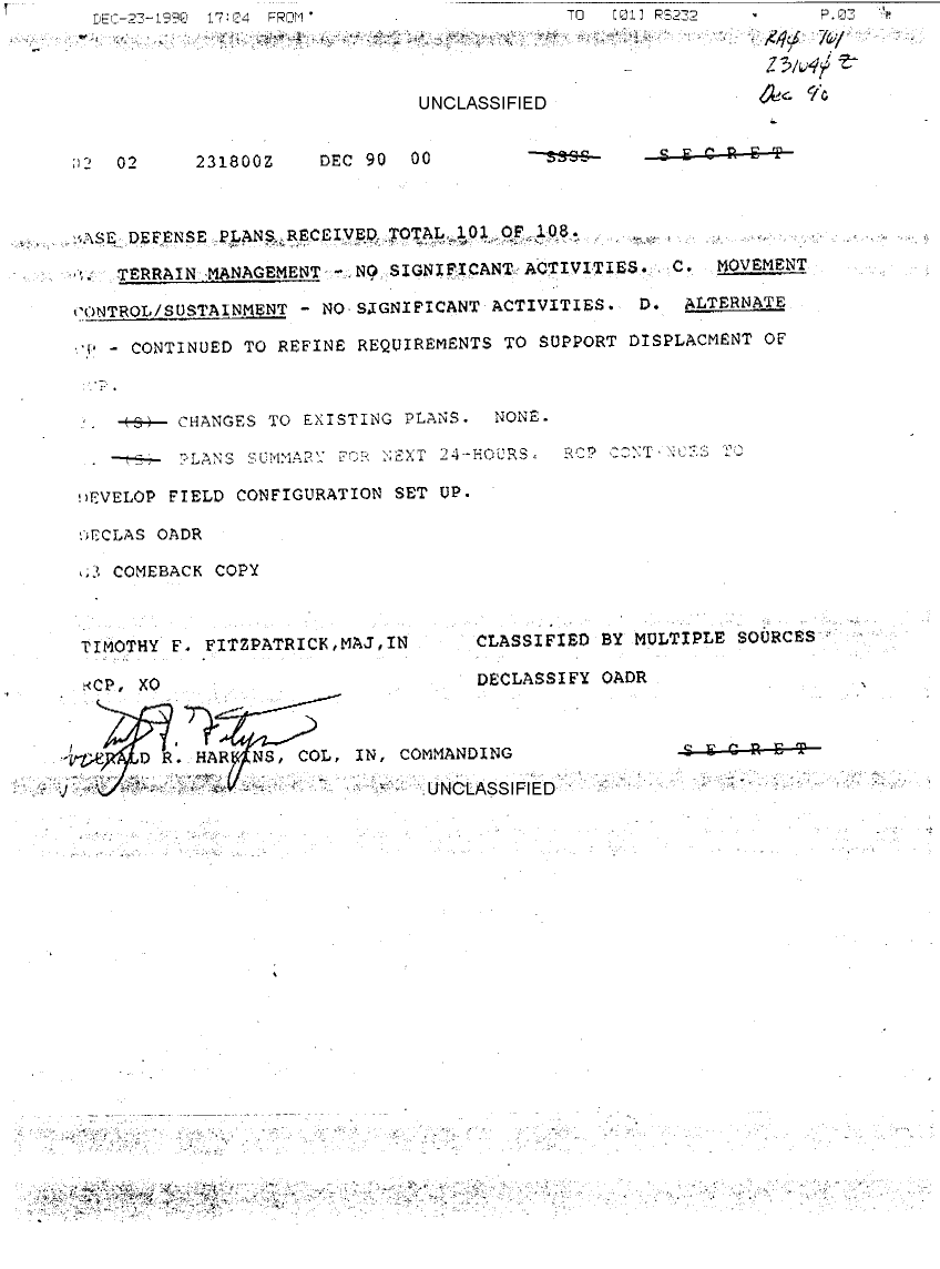 Document 61 f:/Week-17/BX000021/SITUATION REPORTS REAR CP DEC 90/cdr narrative summary dec 90 sequence no 0063:0802961505391