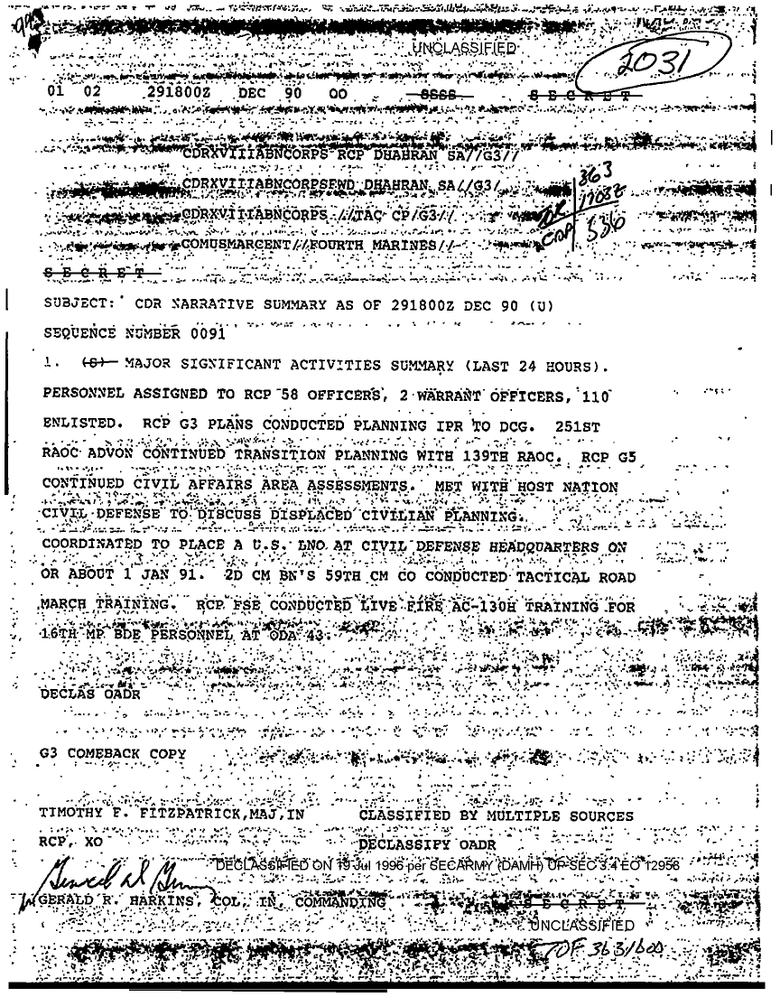 Document 61 f:/Week-17/BX000021/SITUATION REPORTS REAR CP DEC 90/cdr narrative summary dec 90 sequence no 0063:0802961505391