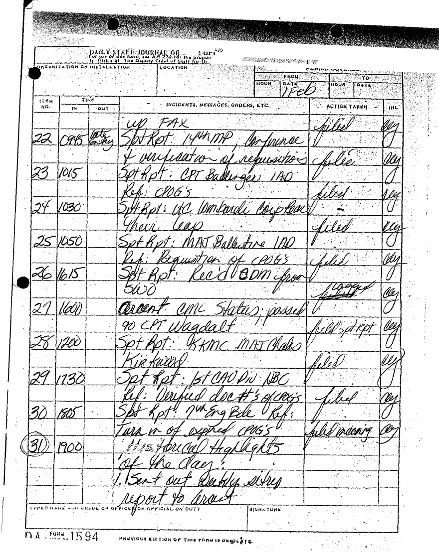 Document 5 f:/Week-24/BX000222/7 CORPS CHEMICAL BOOK 2A/daily staff journal:08029615055326