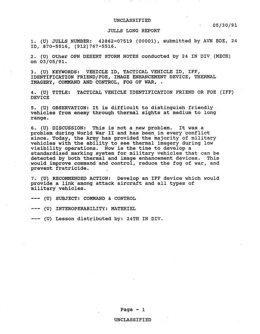 Subject = 24TH MECH INF DIV OPERATION DESERT STORM AFTER A