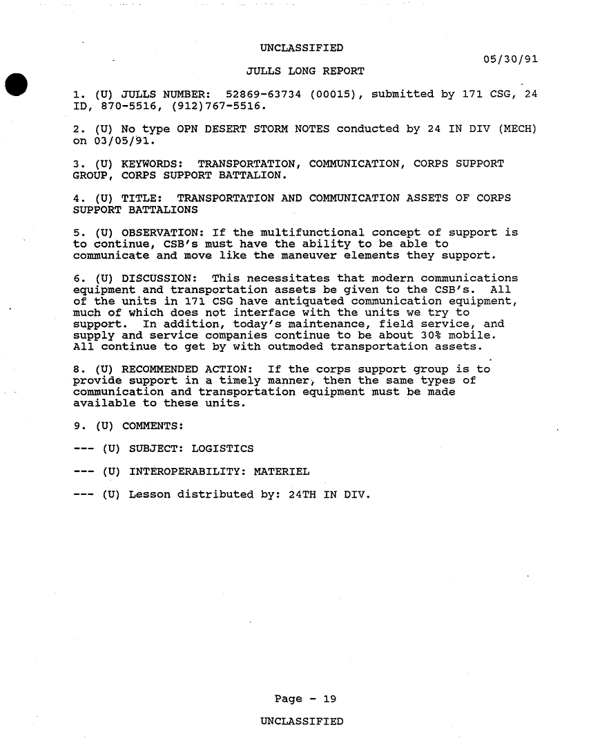 Subject = 24TH MECH INF DIV OPERATION DESERT STORM AFTER A