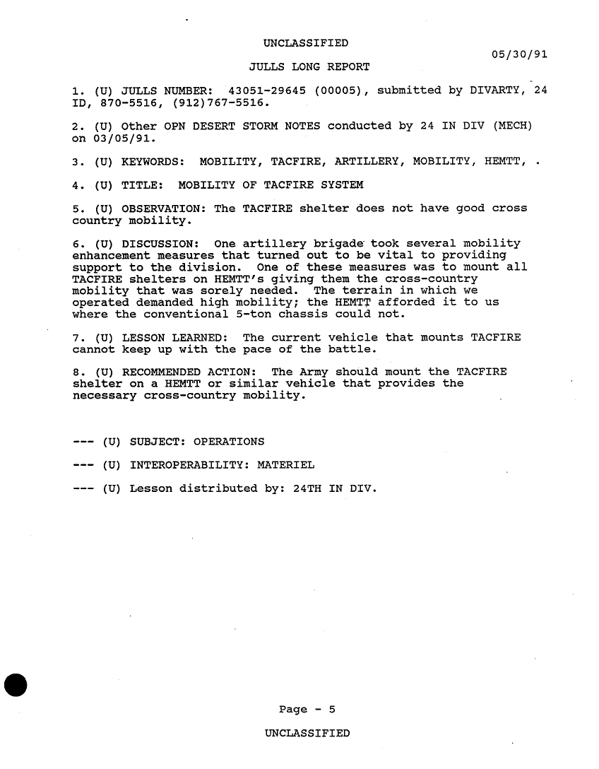 Subject = 24TH MECH INF DIV OPERATION DESERT STORM AFTER A