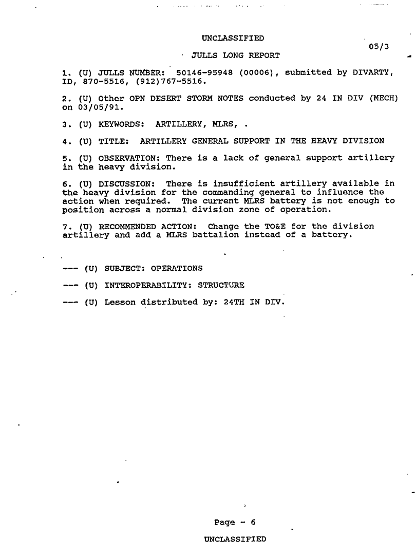 Subject = 24TH MECH INF DIV OPERATION DESERT STORM AFTER A