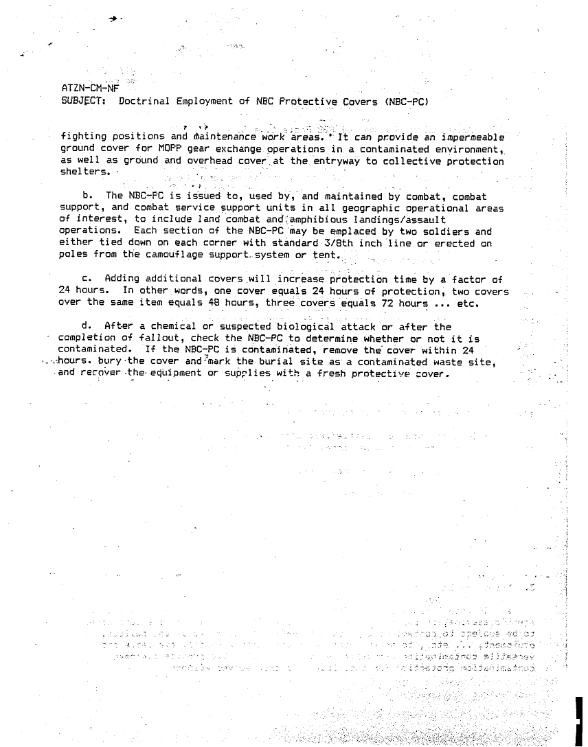 Subject = DOCTRINAL EMPLOYMENT OF NBC PROTECTIVE COVERS