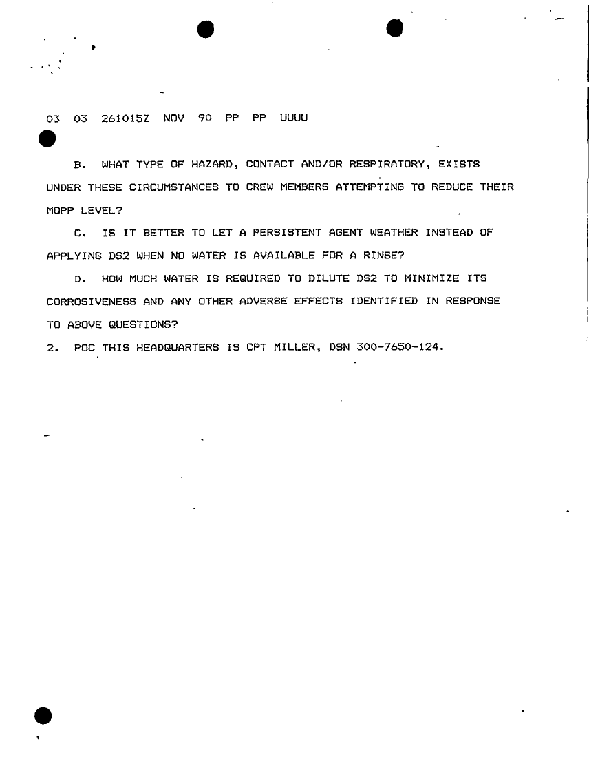 Subject = USE OF DECONTAMINATING AGENT DS2 26 NOV 90