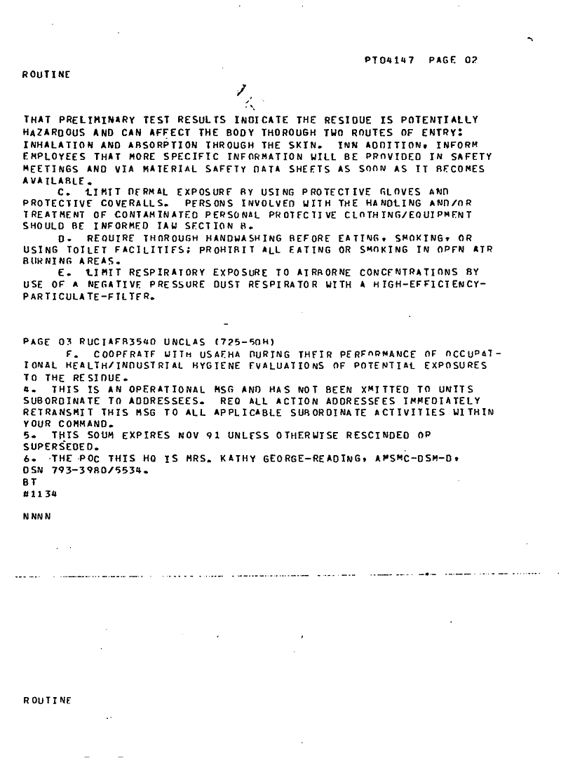 Document 2 f:/Week-21/BX001424/INCOMING MSG - DESERT SHIELD G4 NOV 90 1 OF 4/safety of use msg op amccom no 35 90 handling:08029615054617