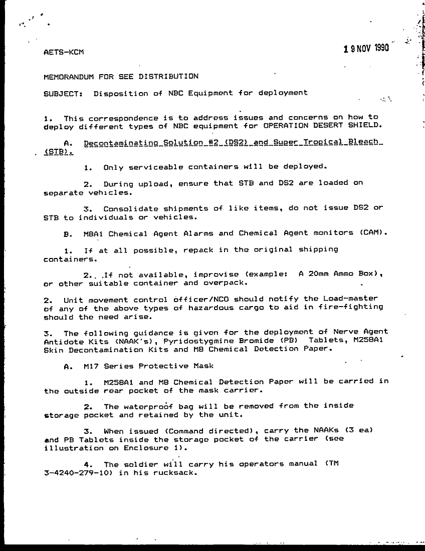 Subject = DISPOSITION OF NBC EQUIPMENT FOR DEPLOYMENT 19